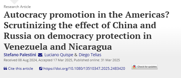 Abstract: Despite sanctions, mediation initiatives and other democracy protection policies implemented by international actors, authoritarianism has consolidated in Venezuela and Nicaragua. This article scrutinizes two possible explanations for the failure of democracy protection: first, the role of China and Russia in helping regime survival, and second, cooperation problems among democracy promoters which increase the odds of regime survival. The article concludes that while China and Russia have been important sources of support for Venezuela and Nicaragua, they are ill-conceptualized as “autocracy promoters”, and that their capacity to curb democracy protection policies has been hitherto limited. Instead, democracy protection has been mainly impaired by policy inconsistencies and weak commitment to multilateralism among democracy promoters. Policymakers are well advised to focus on strengthening the multilateral frameworks for democracy protection and promotion, rather than obsess with external interference. Yet, this might prove to be easier to say than do.